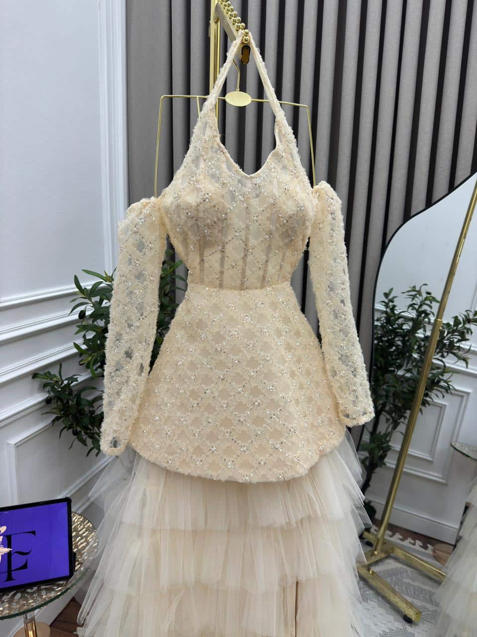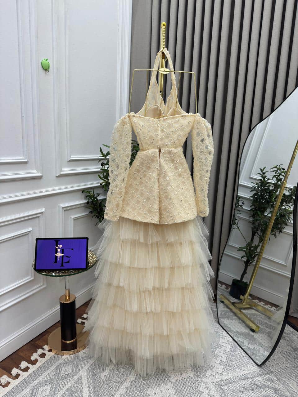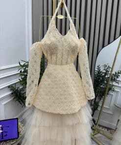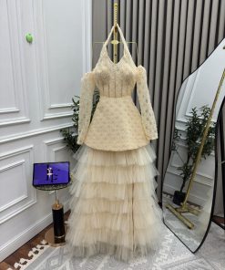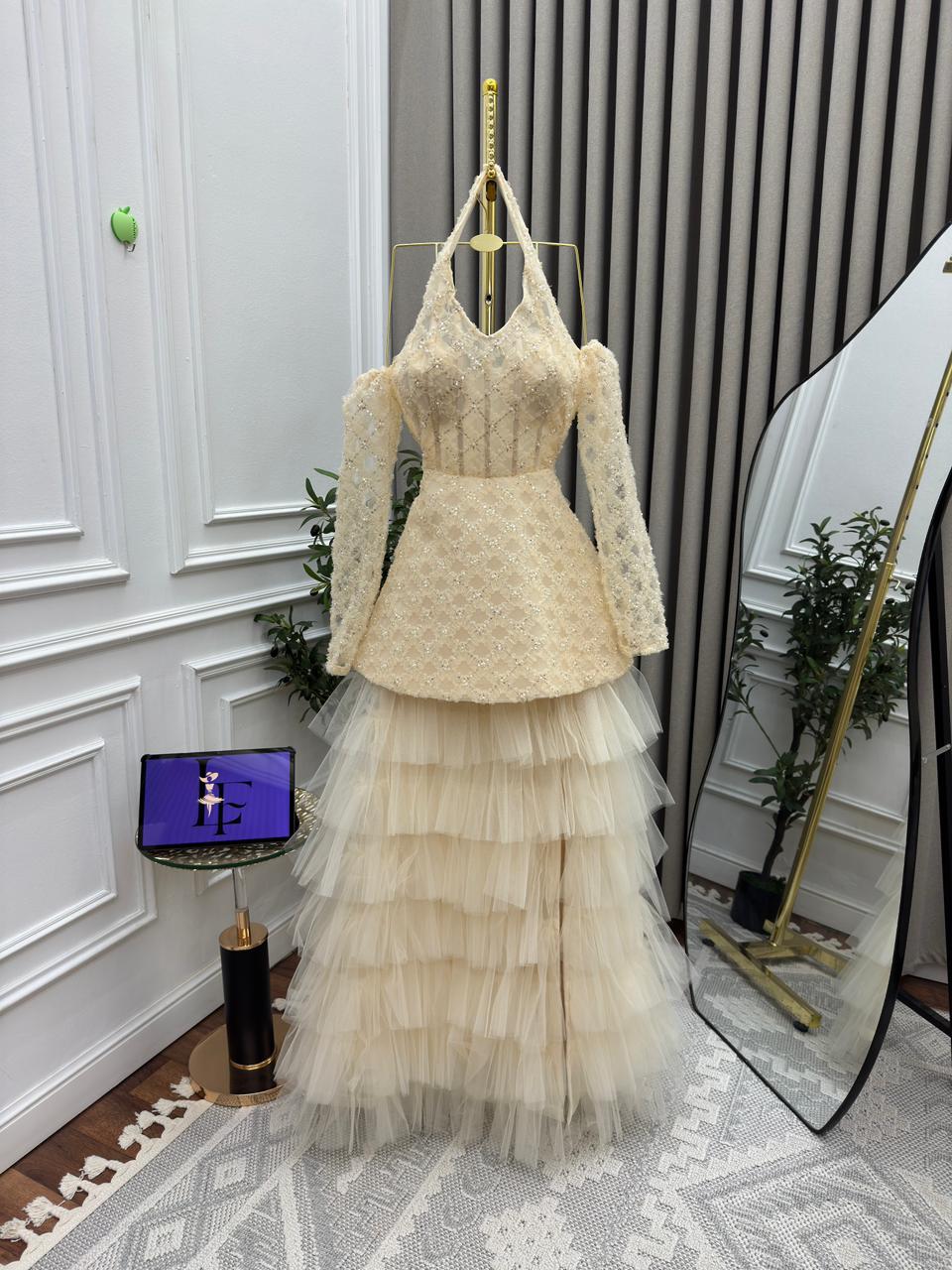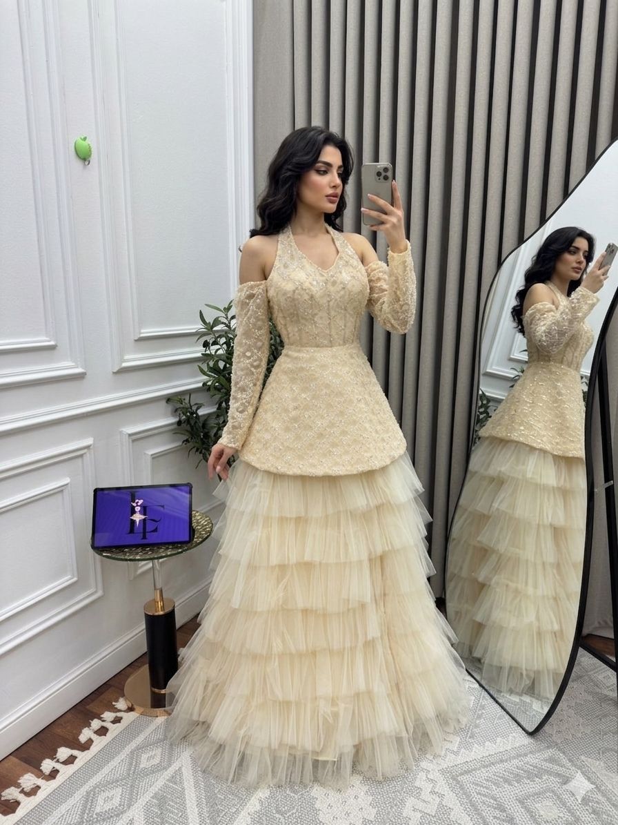 فستان سهرة طويل دانتيل وتول