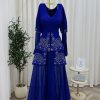 فستان سهرة طويل مزخرف بالخرز بلون الأزرق الملكي
