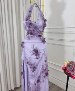 فستان سهرة موف فاتح بتطريز وزهور ثلاثية الأبعاد – لمسة أنوثة من روزيتا