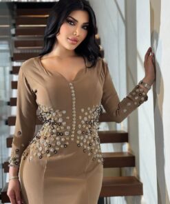 يتميز هذا الفستان الطويل بتصميم فاخر يجمع بين الأناقة والأنوثة ليمنحك مظهرًا رائعًا في السهرات والحفلات. قصته الجميلة تبرز جمال القوام وتجعله مناسبًا.