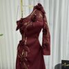 فستان سهرة عتيق بكتف واحد مزين بالورود والتطريز