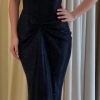 القَصّة الانسيابية للفستان تحتضن القوام بشكل متناسق، مع تفاصيل دقيقة عند الخصر تبرز الأنوثة بأسلوب راقٍ دون مبالغة. أما الخامة، فهي ناعمة وفاخرة، تنسدل بسلاسة لتمنحكِ إحساسًا بالراحة إلى جانب الإطلالة الأنيقة.