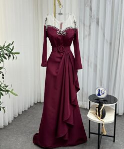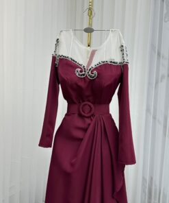 فستان سهرة عنابي بتفاصيل راقية وأنيقة