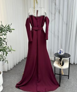 فستان نسائي أنيق في هذه القطعة بلون عنابي غني، يتميز بتصميم راقٍ للسيدات يلبس بين الماس والفخامة. نظرًا لقصة وانسيابية مستقيمة، ومصمم بأكمام طويلة يغطي الذراعين بالكامل، مما يمنحه طابعًا تقليديًا مضمونًا.