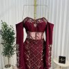 فستان سهرة عنابي مزخرف بالتطريزات اللامعة – إطلالة ساحرة من متجر روزيتا السعودي