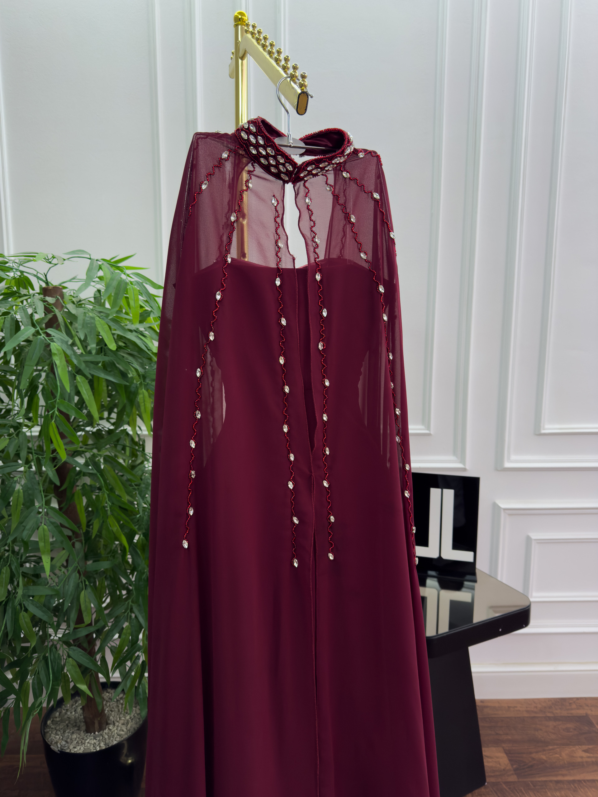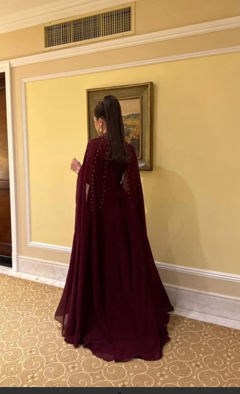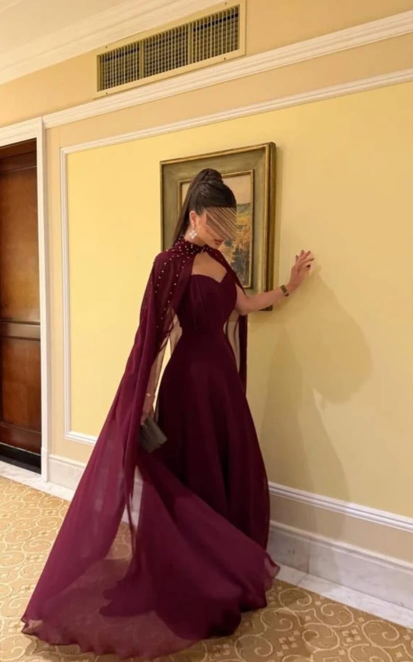 فستان سهرة عنّابي ملكي بتصميم فاخر – من متجر روزيتا السعودية
