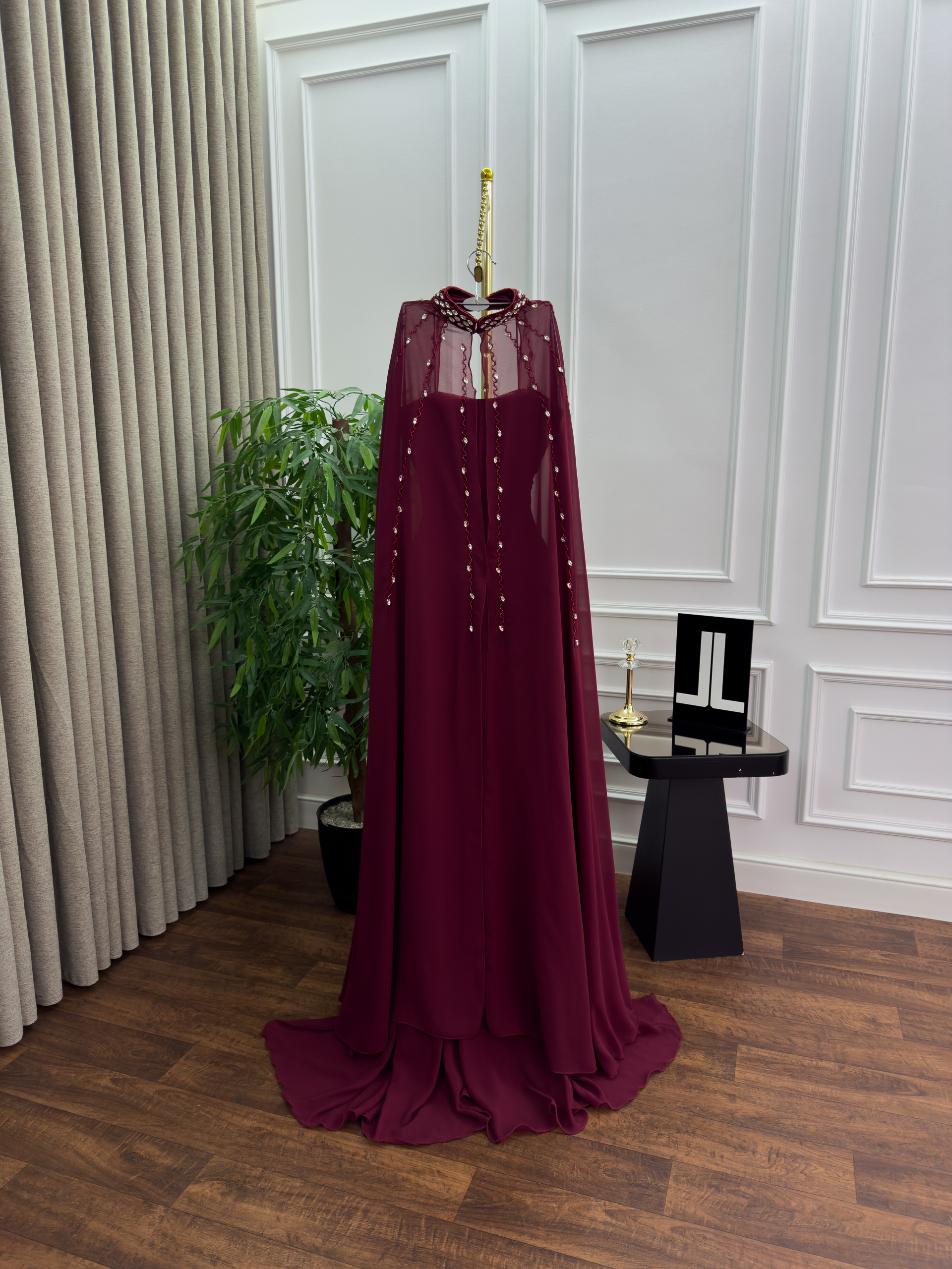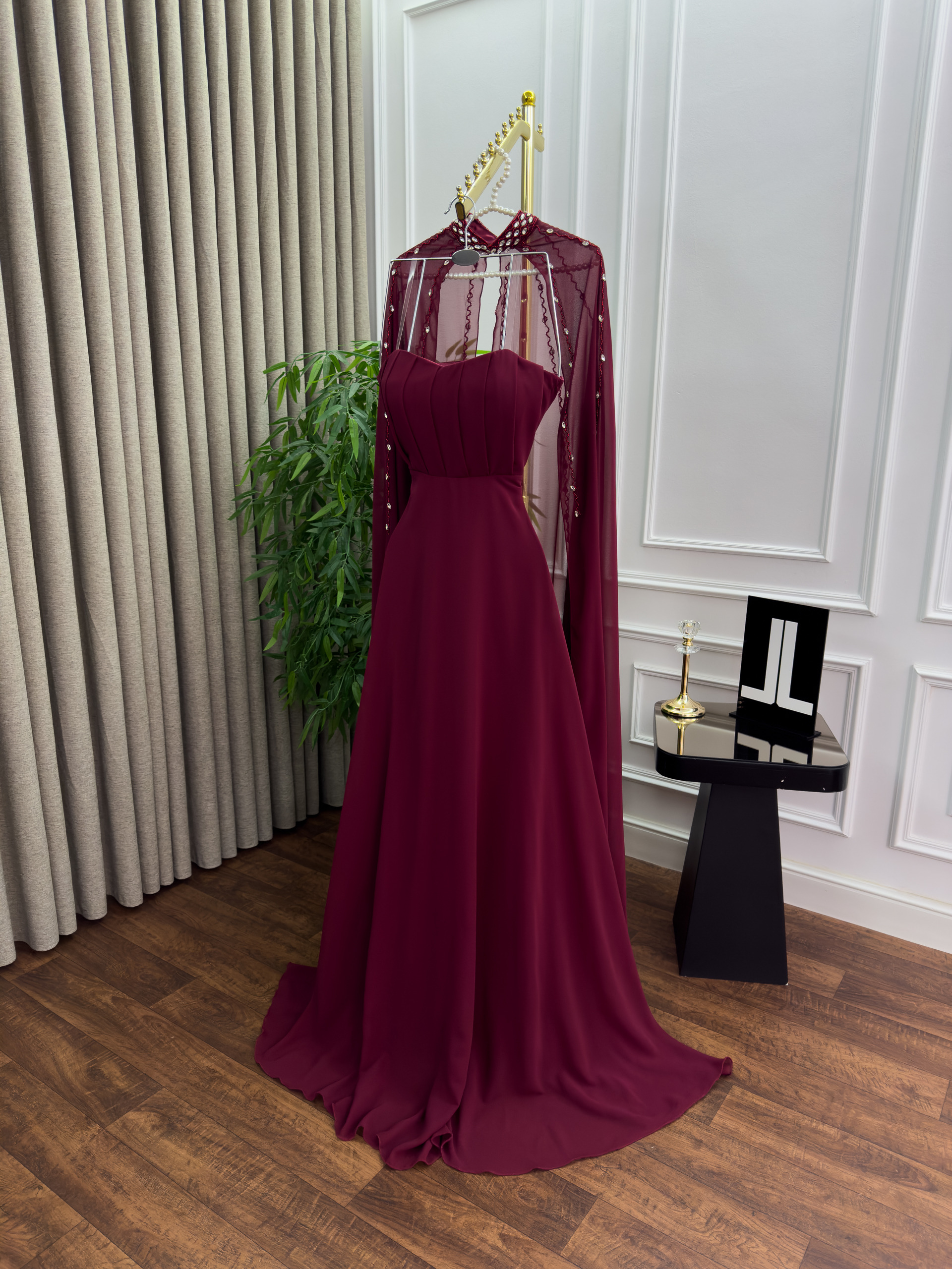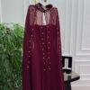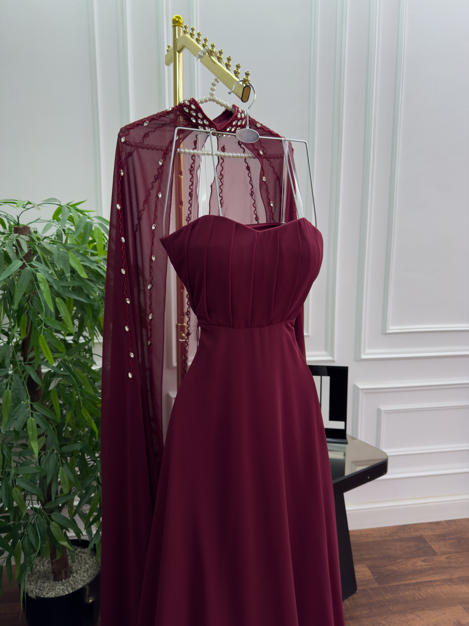 فستان سهرة عنّابي ملكي بتصميم فاخر – من متجر روزيتا السعودية
