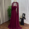 فستان سهرة عنّابي ملكي فاخر