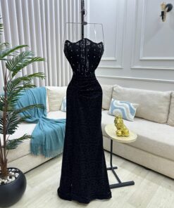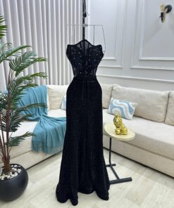 فستان سهرة فاخر باللون الأسود للمناسبات