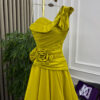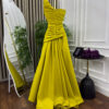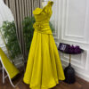 فستان سهرة فاخر بكتف واحدة وتصميم وردة بلون أصفر ليموني جذاب