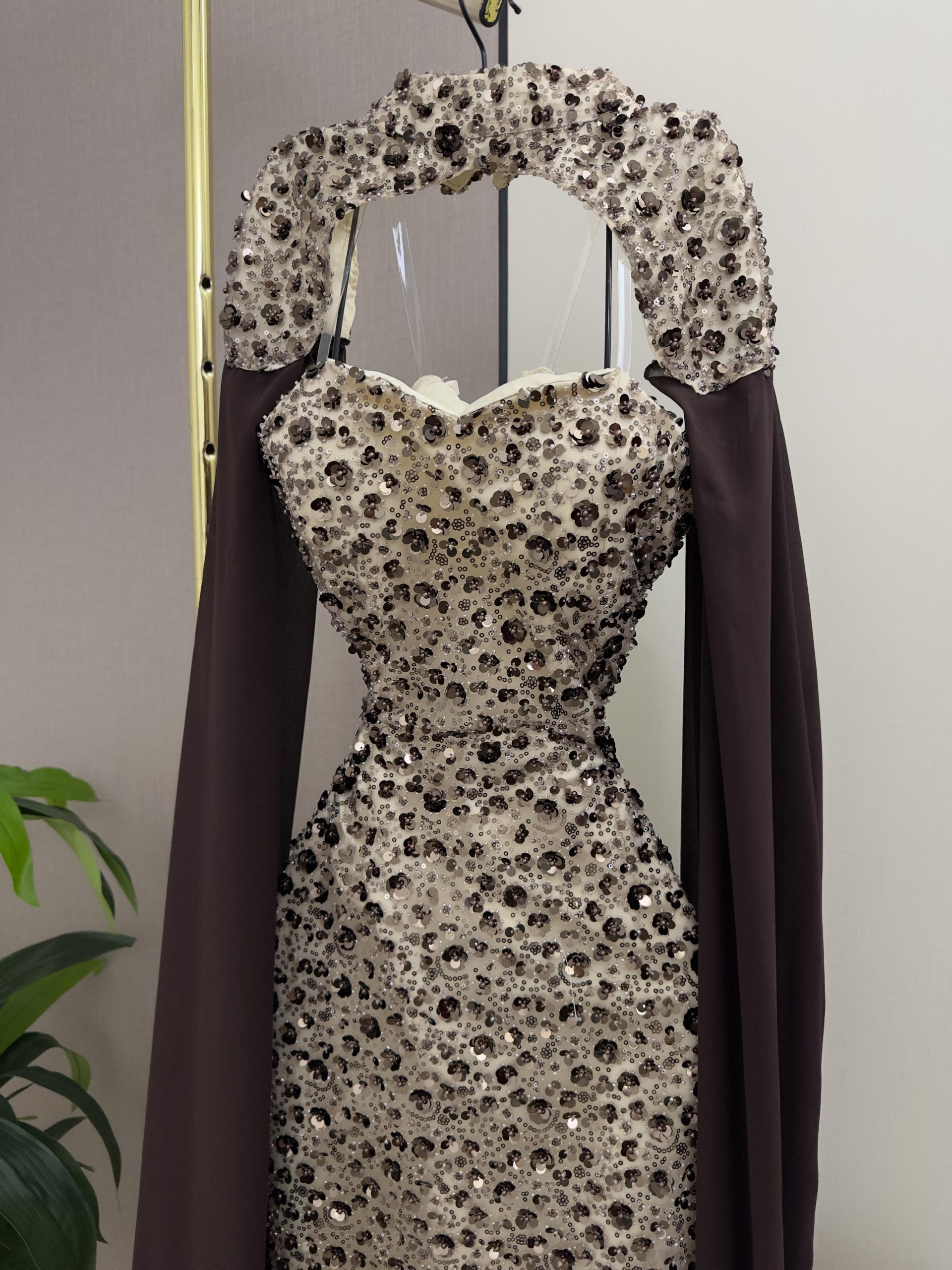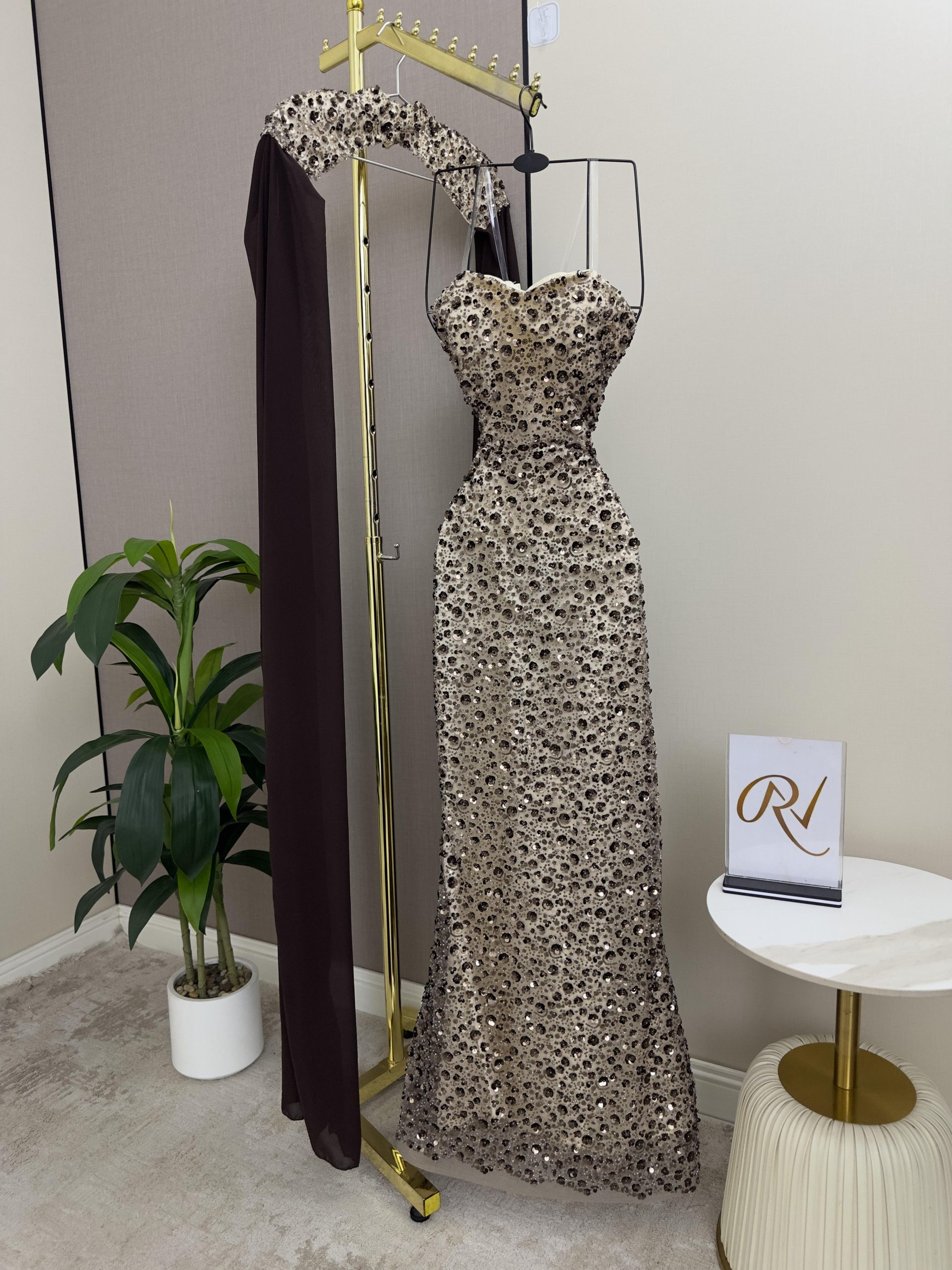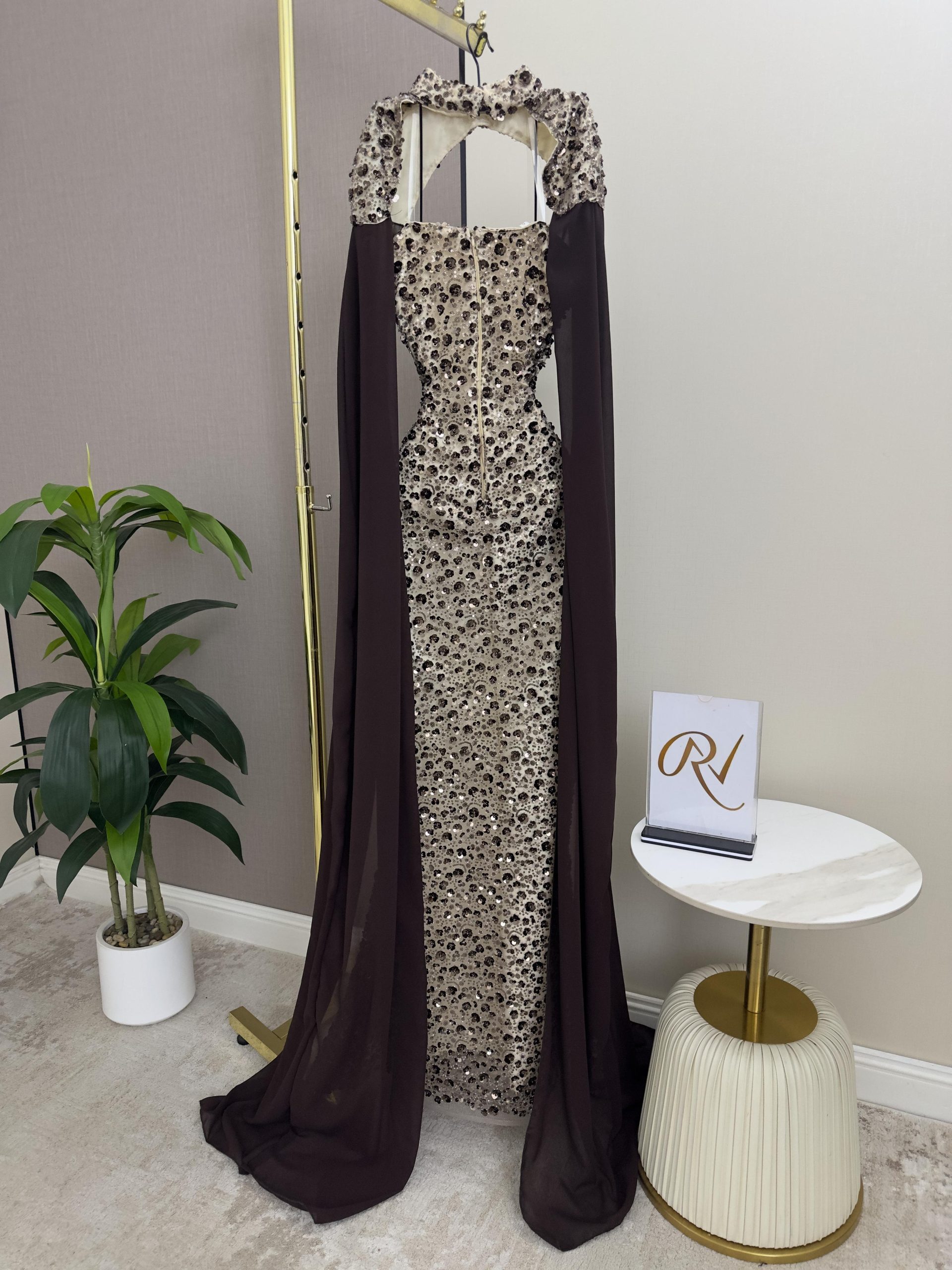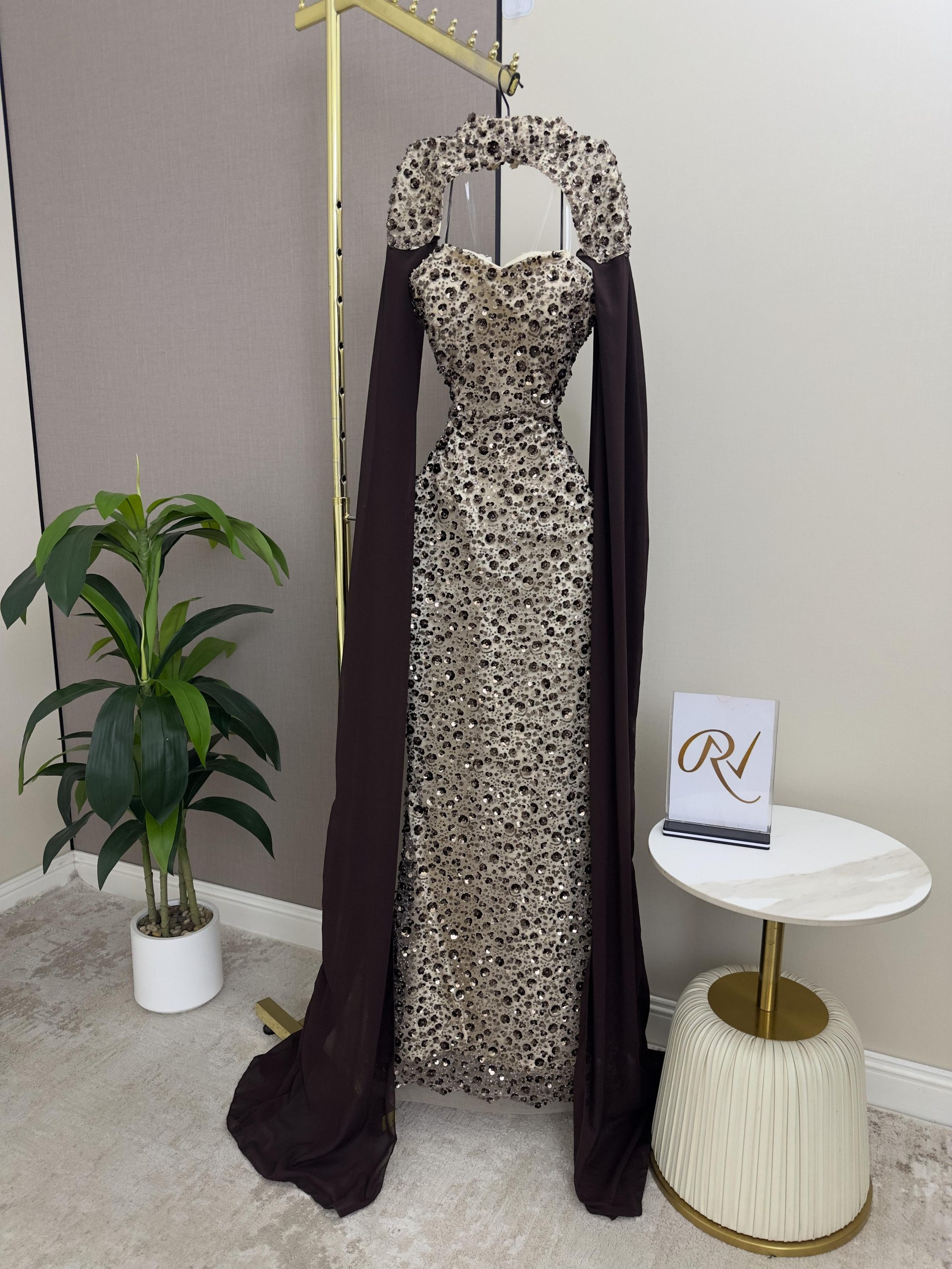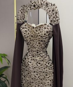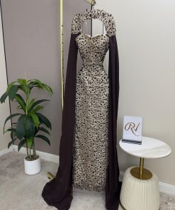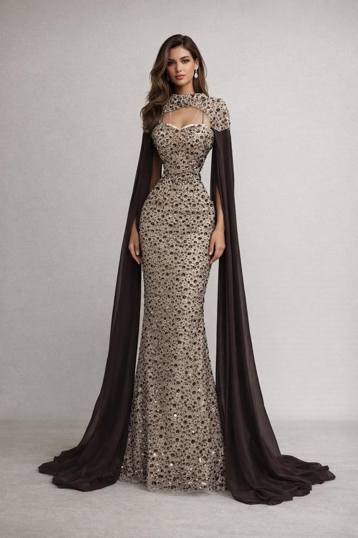 فستان سهرة فاخر مطرز بقصة ضيقة مع كيب شيفون أنيق | روزيتا السعودية