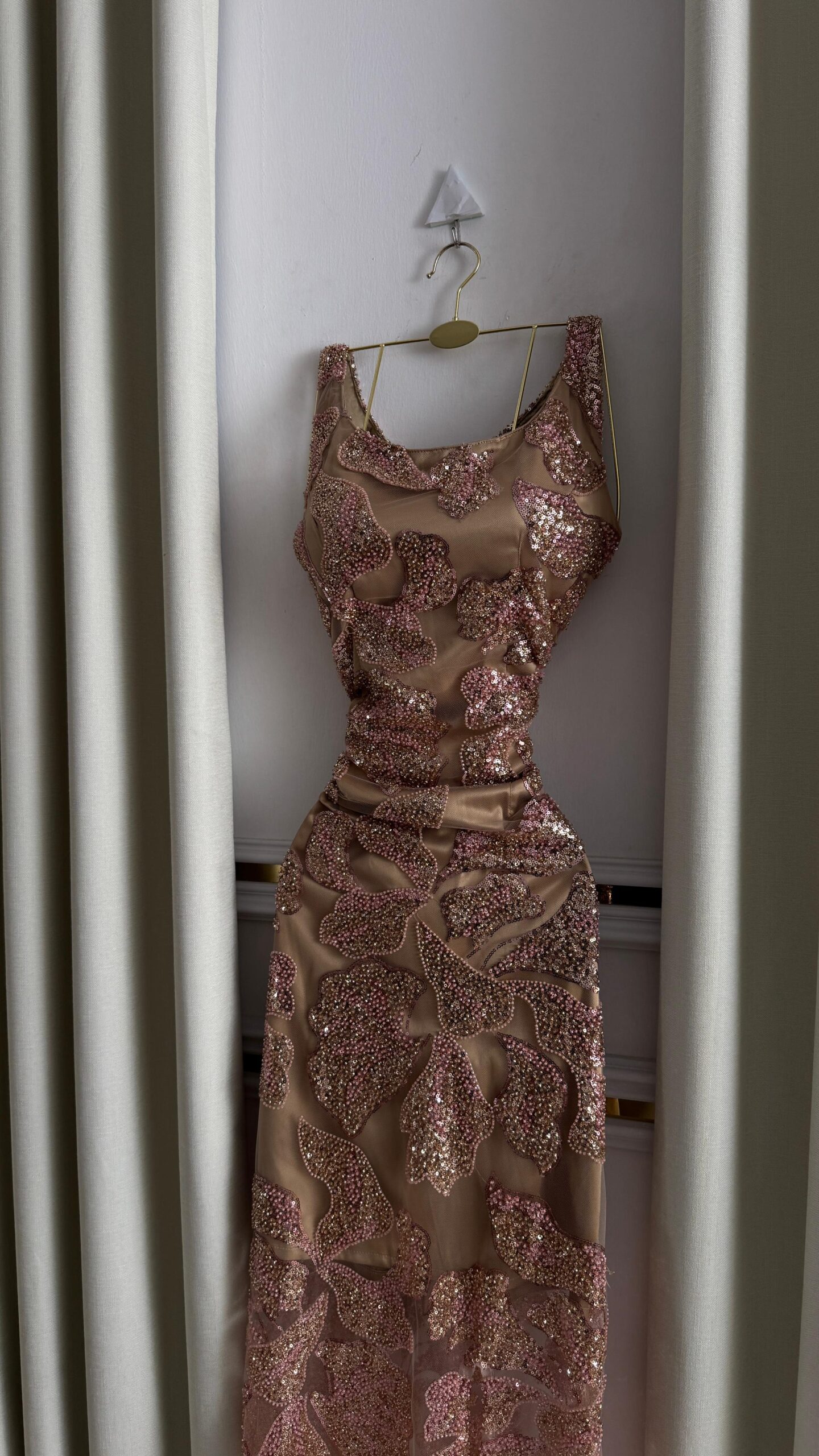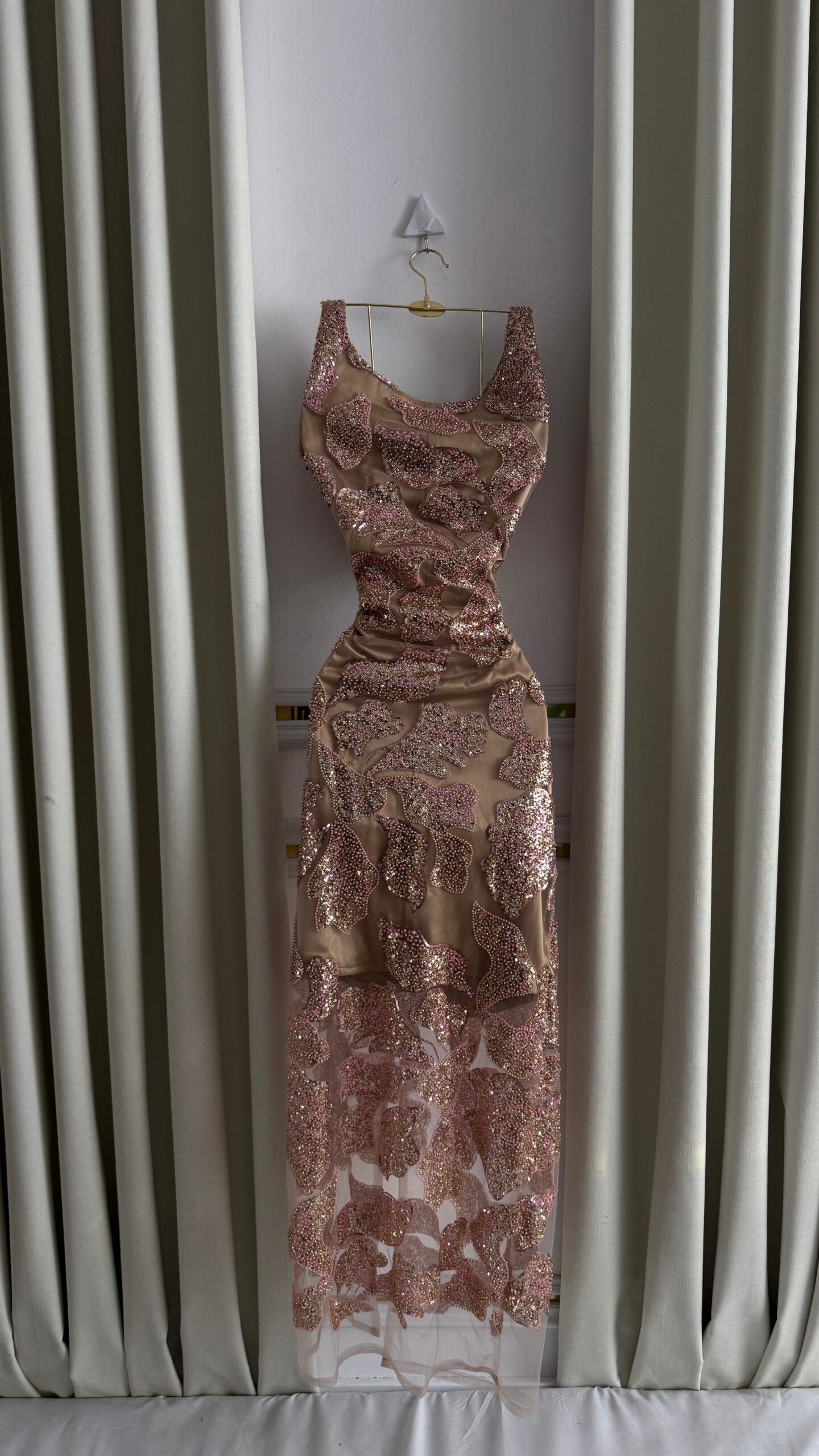 قدّمي نفسك بأبهى صورة مع هذا الفستان الساحر من متجر روزيتا، بتصميم أنيق يجمع بين الراقي وتطريز فاخر يضفي بريقًا ناعمًا على إطلالتك. صُمم الفستان بقماش لامع خفيف ينسدل بانسيابية مذهلة، مع لمسات ترتر متقنة تبرز جمال القوام بأسلوب أنثوي راقٍ.