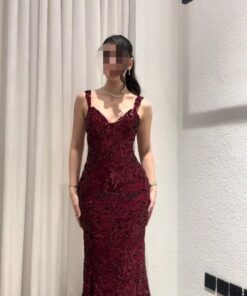 استمتعي بإطلالة تخطف الأنظار مع فستان السهرة العنابي الفخم من روزيتا، الذي يجمع بين الأناقة الكلاسيكية واللمسة العصرية. يتميز الفستان بلونه العنابي العميق الذي يعكس الفخامة والرقي، مع تطريز يدوي دقيق بالخرز والترتر اللامع ليمنحك تألقًا خاصًا في كل مناسبة.