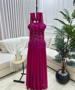 فستان سهرة فوشيا مطرز أنيق كورسيه وانسيابية ملكية