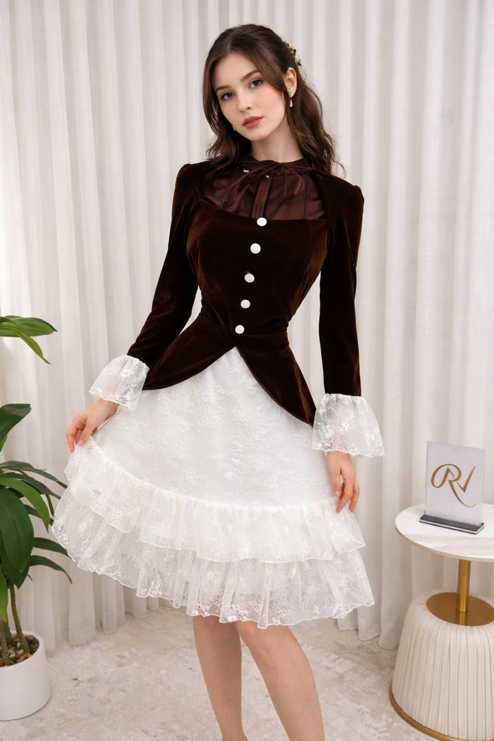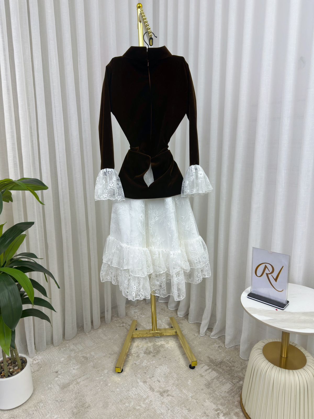 القماش جوخ علئ دانتيل ابيض طبقات مبطن