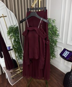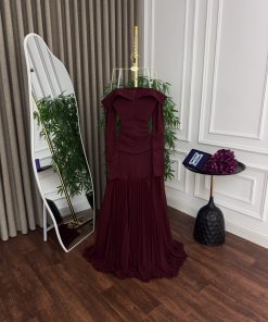 فستان سهرة قطعتين عنابي فاخر