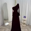 فستان سهرة قطيفة بتصميم كتف واحد ولمسة دانتيل أنيقة