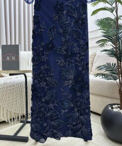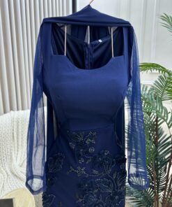 فستان سهرة كحلي بتطريز فاخر عباءة شفافة: لمسة ملكية لكل