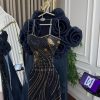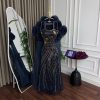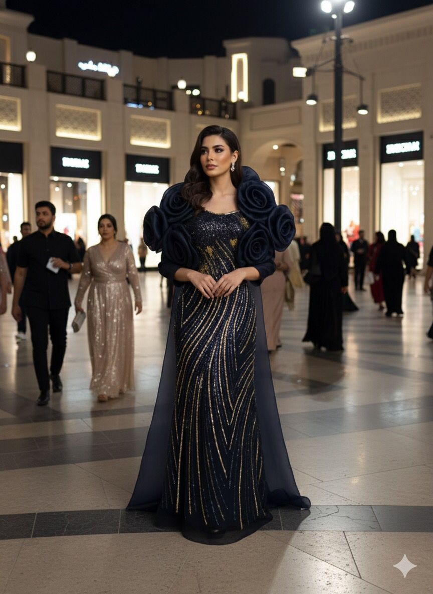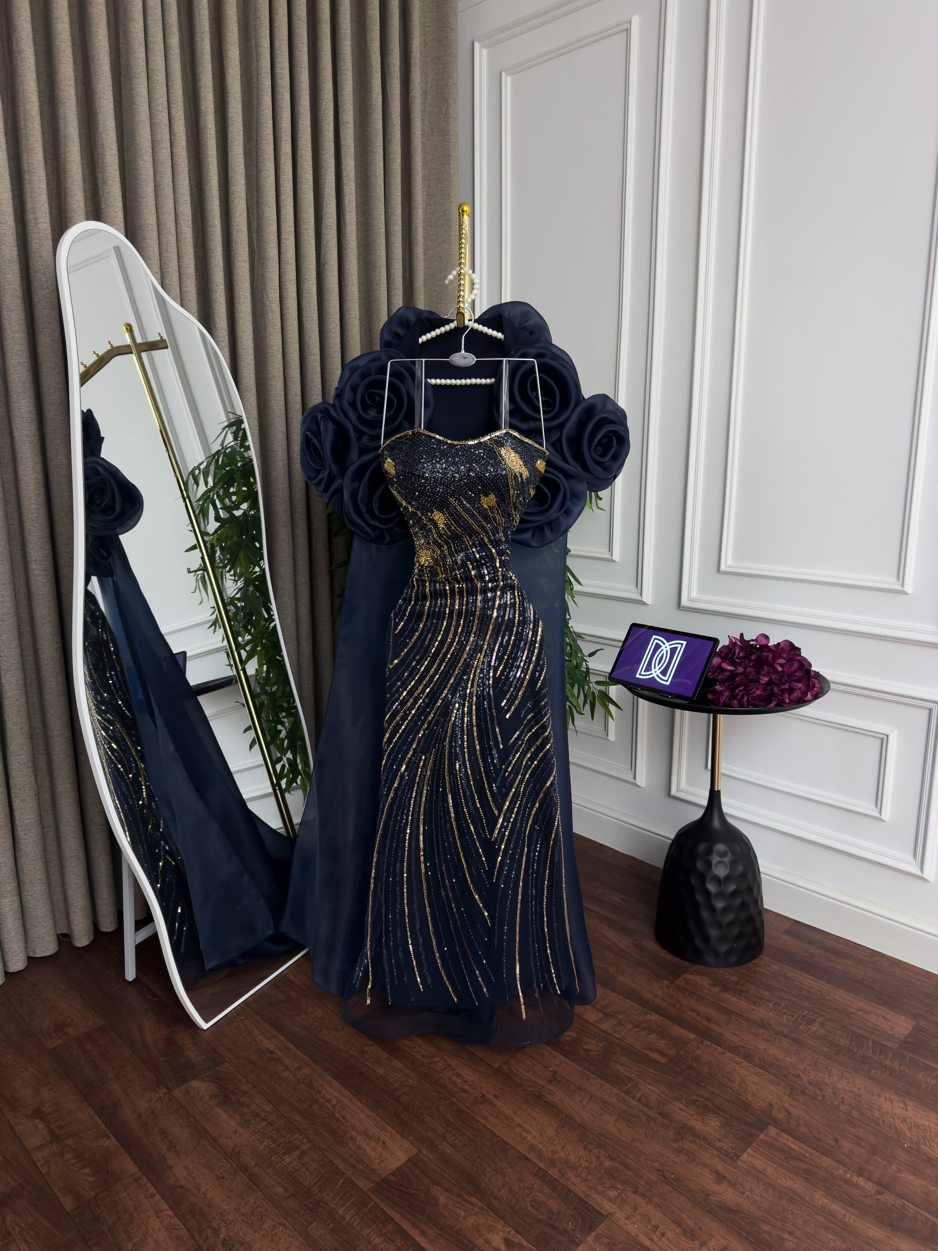 فستان سهرة كحلي مطرز بالذهبي – أناقة تخطف الأنظار من روزيتا السعودية