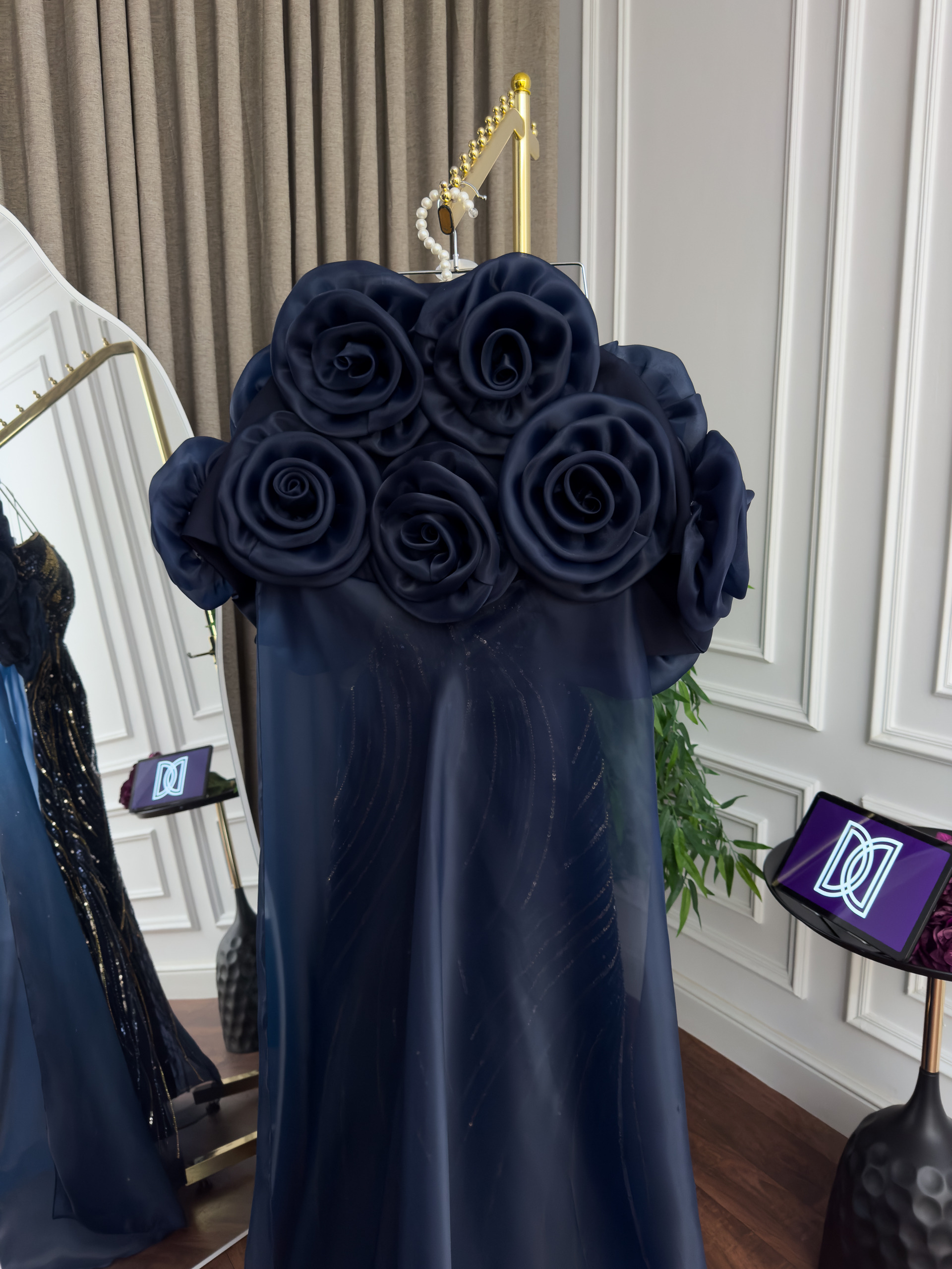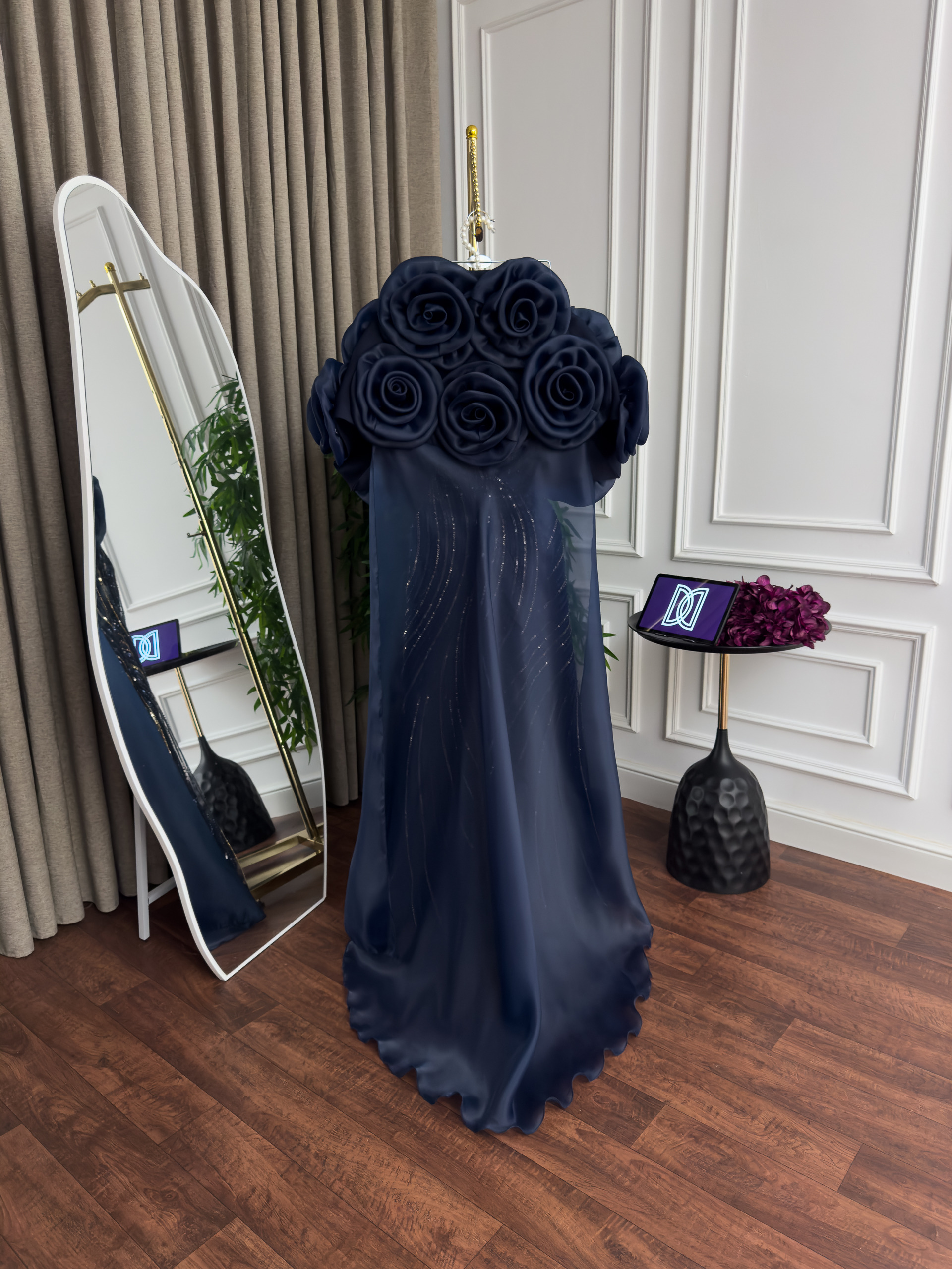 فستان سهرة كحلي فخم تصميم راقٍ للمناسبات والحفلات