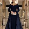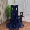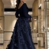 فستان سهرة كحلي بأكمام طويلة وتصميم ملكي – متجر روزيتا