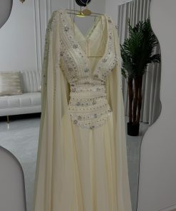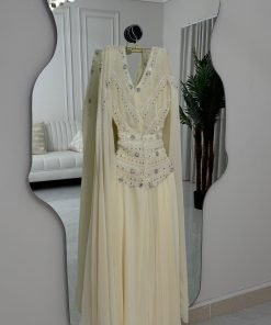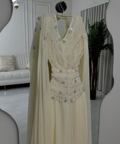 فستان سهرة لون أبيض وورود