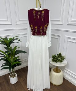 شيفون دبل كلوش + صدرية لكرا كريب تطريز يدوي