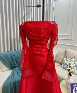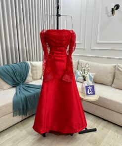 تألقي بإطلالة ساحرة مع هذا الفستان الأحمر الفخم الذي يجمع بين التصميم الكلاسيكي والدانتيل الراقي. أكمامه الطويلة من الدانتيل تضيف لمسة أنثوية جذابة، فيما تمنح قصّته الأنيقة حضورًا ملكيًا يخطف الأنظار..