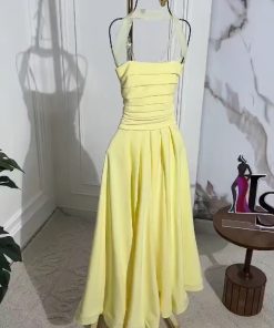 فستان سهرة لون أحمر _أصفر