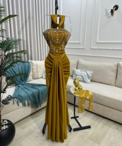 فستان سهرة لون أصفر ذهبي