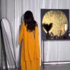 فستان سهرة لون أصفر فخم طويل
