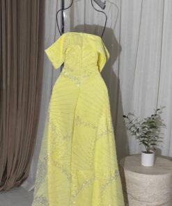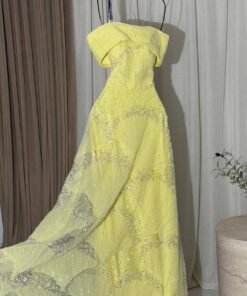 شك يدوي وخرز وتور فرنسي باللون الليموني اناقة وفخامة للمناسبات الكبيرة