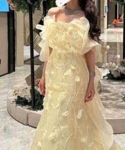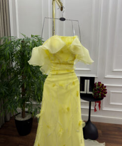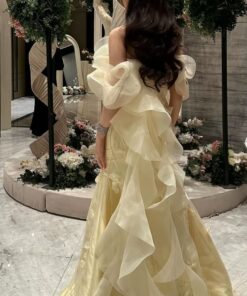 فستان سهرة لون أصفر طويل