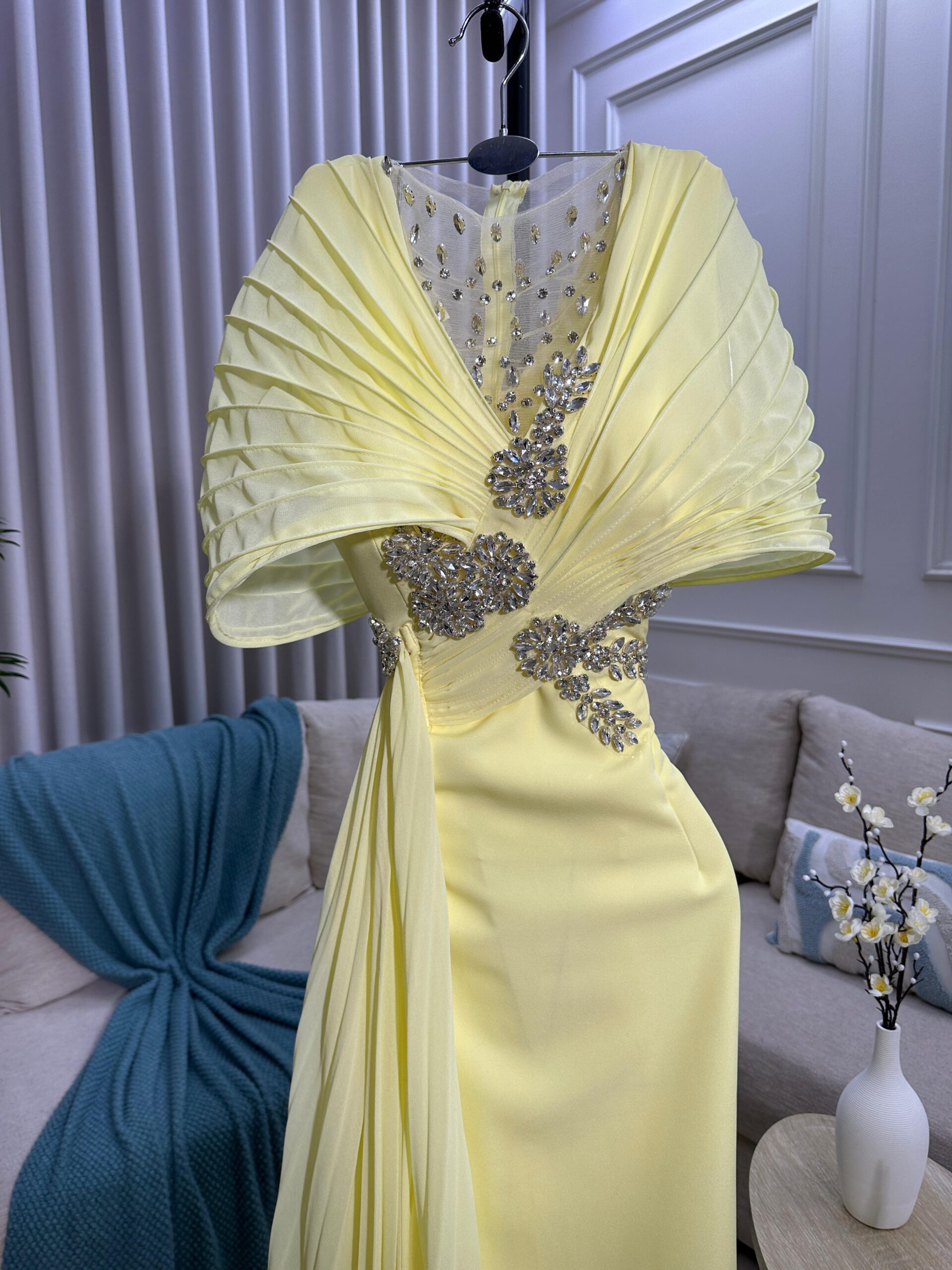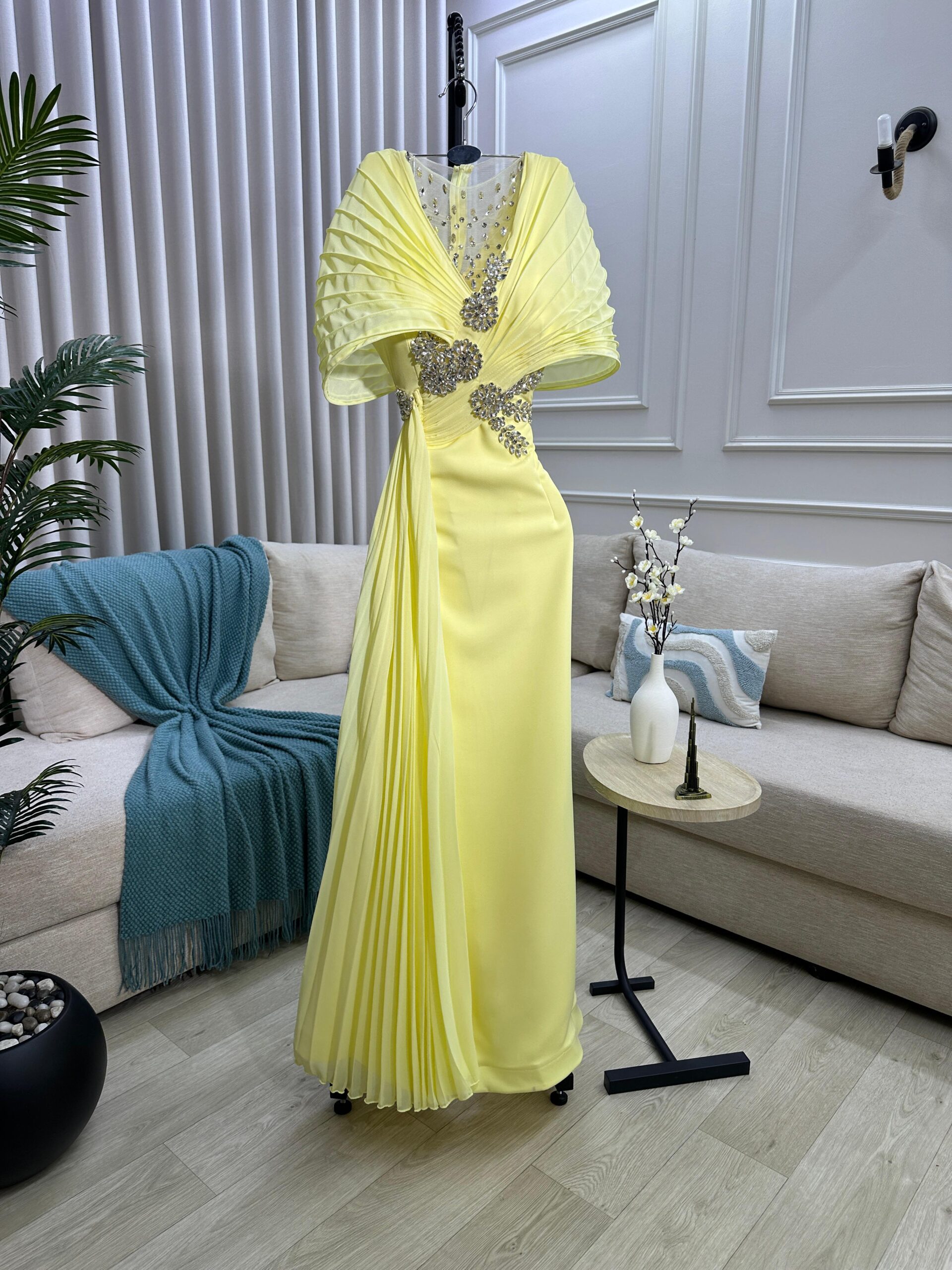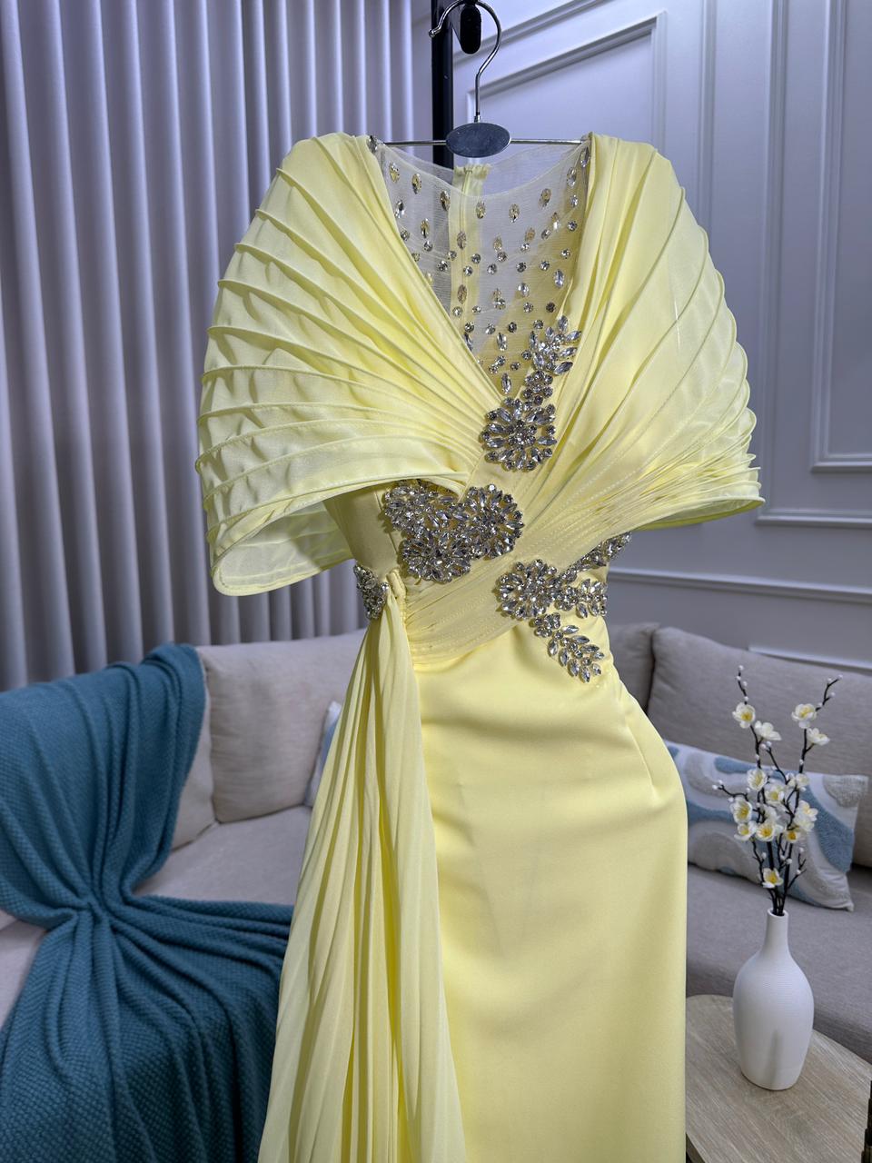 فستان سهرة لون أصفر