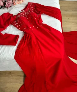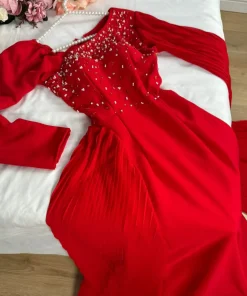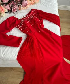 استمتعي بجاذبية فساتين اللون الأحمر سهرة راقية تعكس الأناقة والثقة.