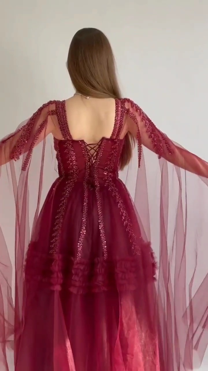 فستان يجمع بين الأنوثة، الفخامة، والتفاصيل الدقيقة التي تجعل كل امرأة تشعر وكأنها نجمة الأمسية.