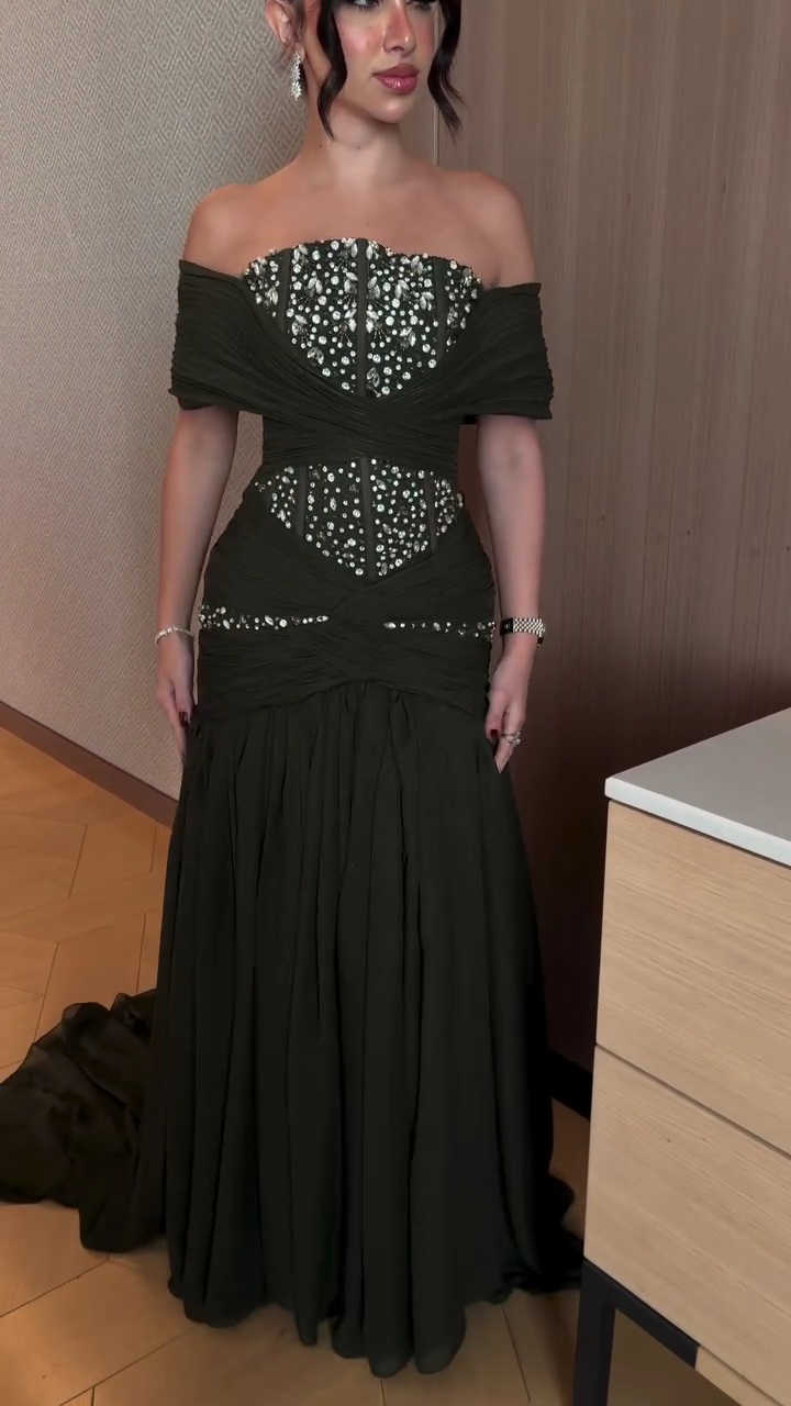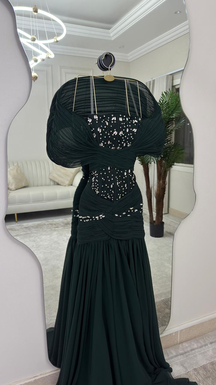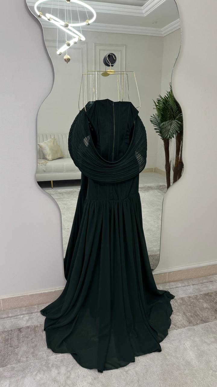 يقدّم لكم متجر روزيتا هذا التصميم الآسر الذي يجمع بين الفخامة والرقي، ليمنح المرأة السعودية حضورًا يليق بذوقها الرفيع في مناسباتها الخاصة. يأتي الفستان بلونٍ أخضر داكن عميق يضفي جاذبية غامضة، مع قصّة انسيابية تبرز جمال القوام وتمنح إطلالة ملكية من أول نظرة.