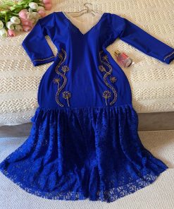 فستان سهرة لون ازرق كريب
