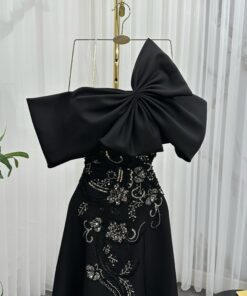 فستان سهرة لون اسود تتطريز يدوي