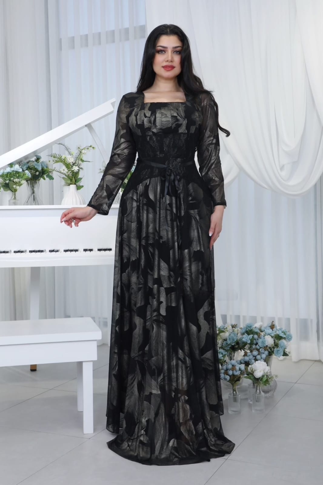 فستان سهرة لون اسود في رصاصي