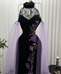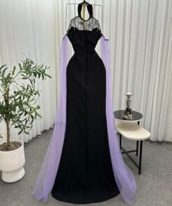 فساتين سهرة سوداء مطرزة بالبنفسجي لإطلالة ملكية