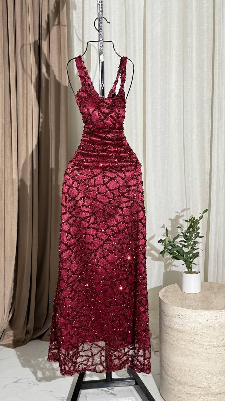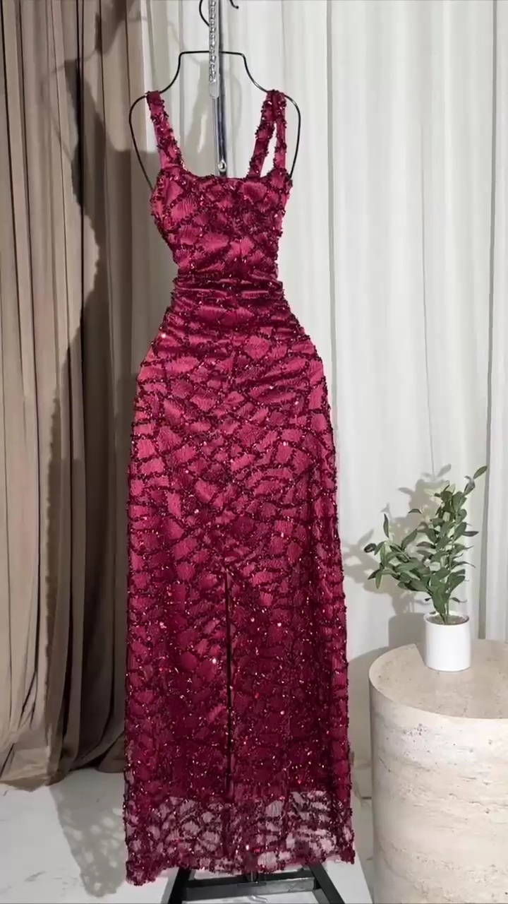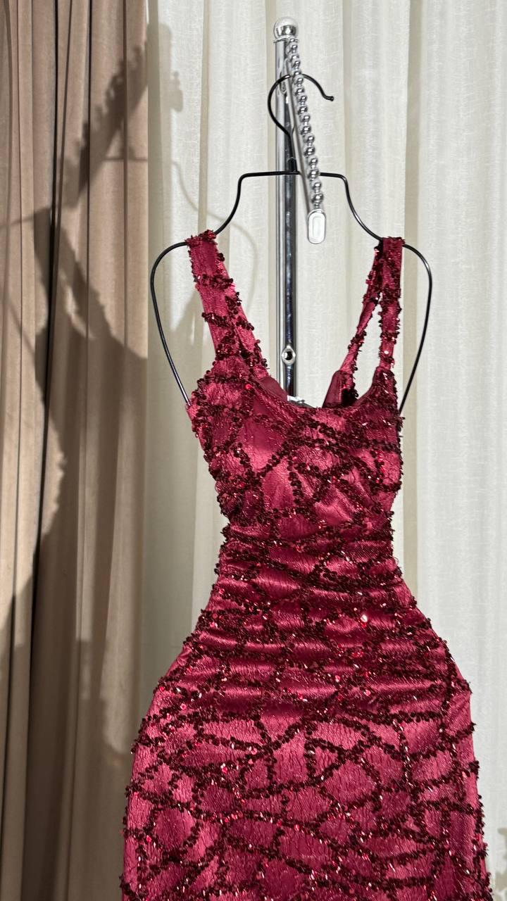 فستان مصمم بعناية ليجمع بين الفخامة والجرأة في مزيج أنيق يبرز جمالك ويمنحك حضورًا لا يُنسى في كل مناسبة.