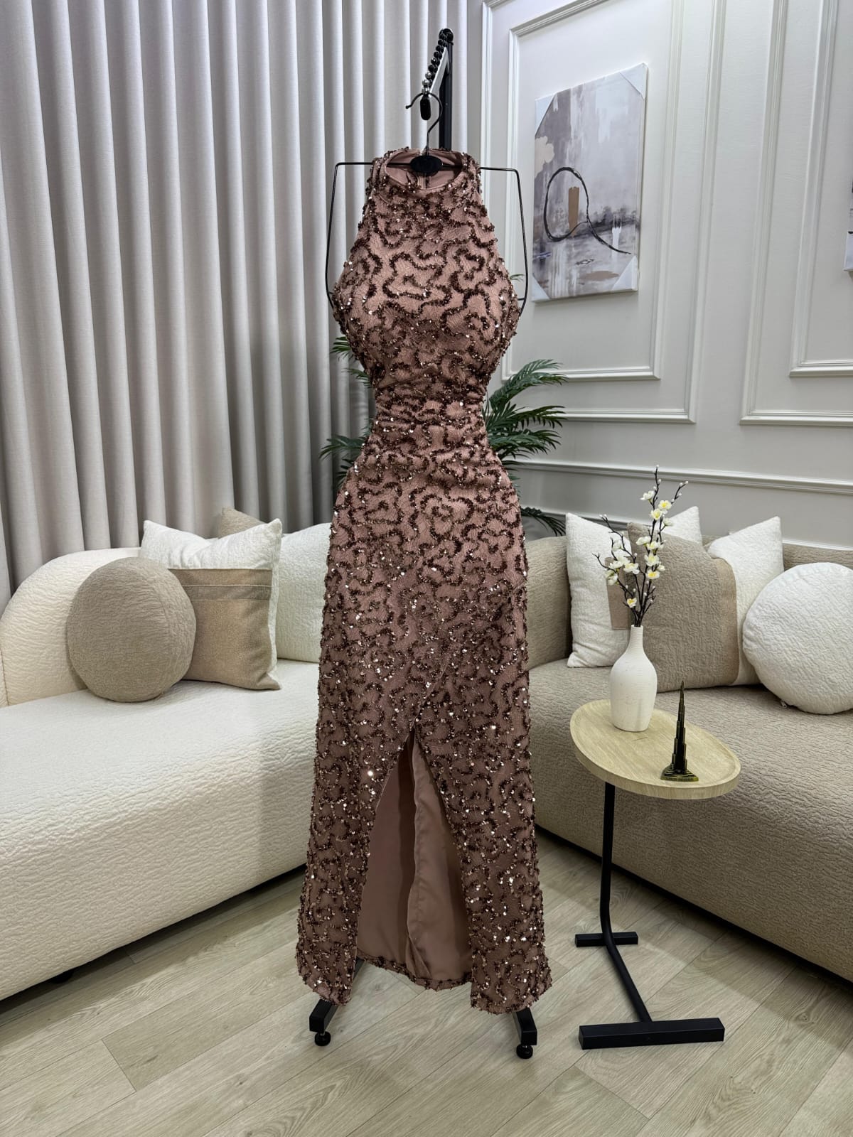 فستان سهرة لون بني