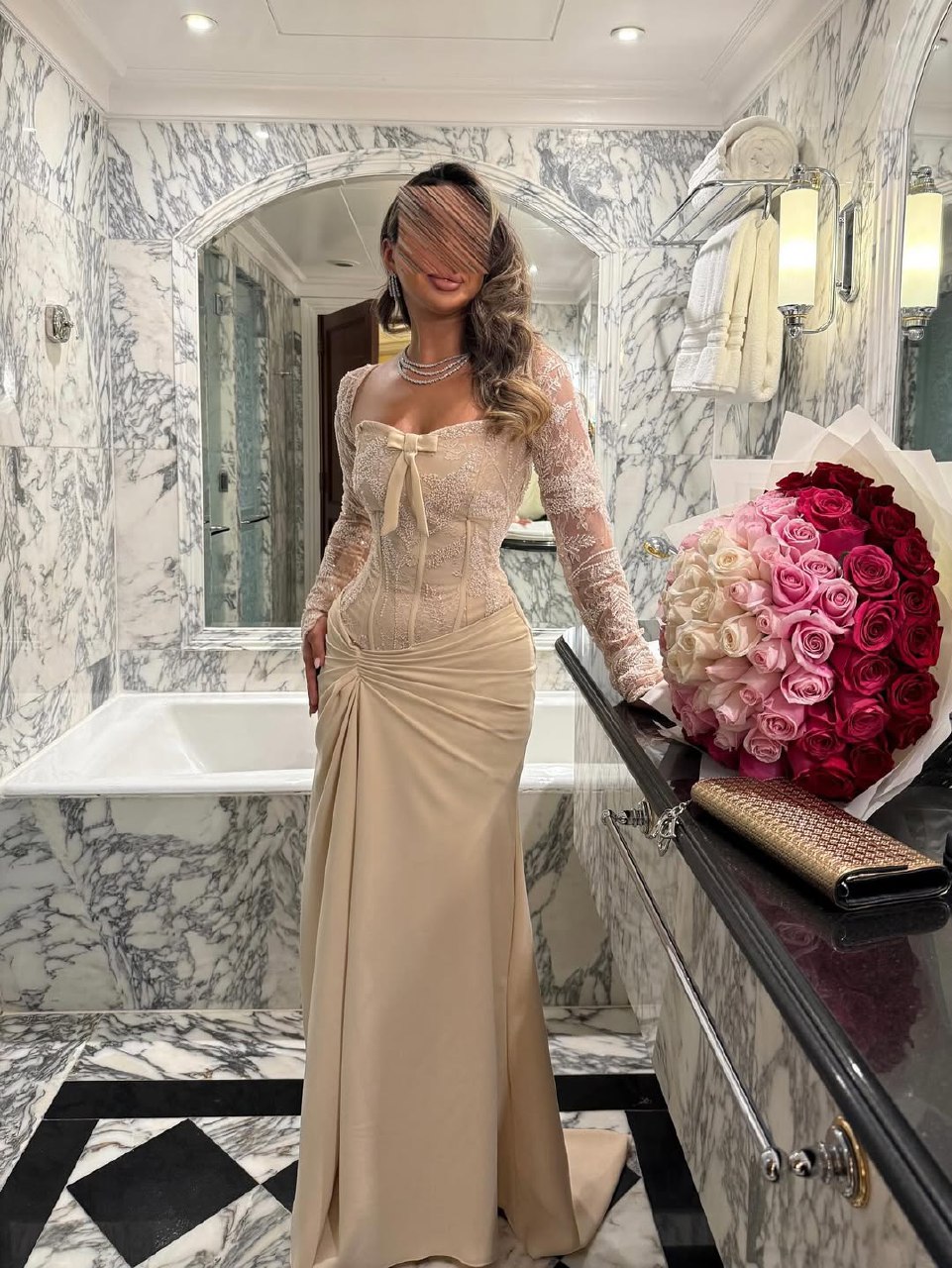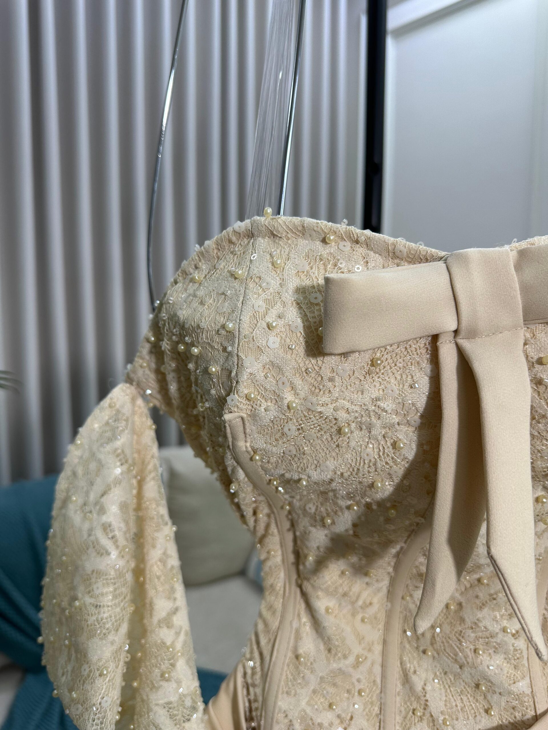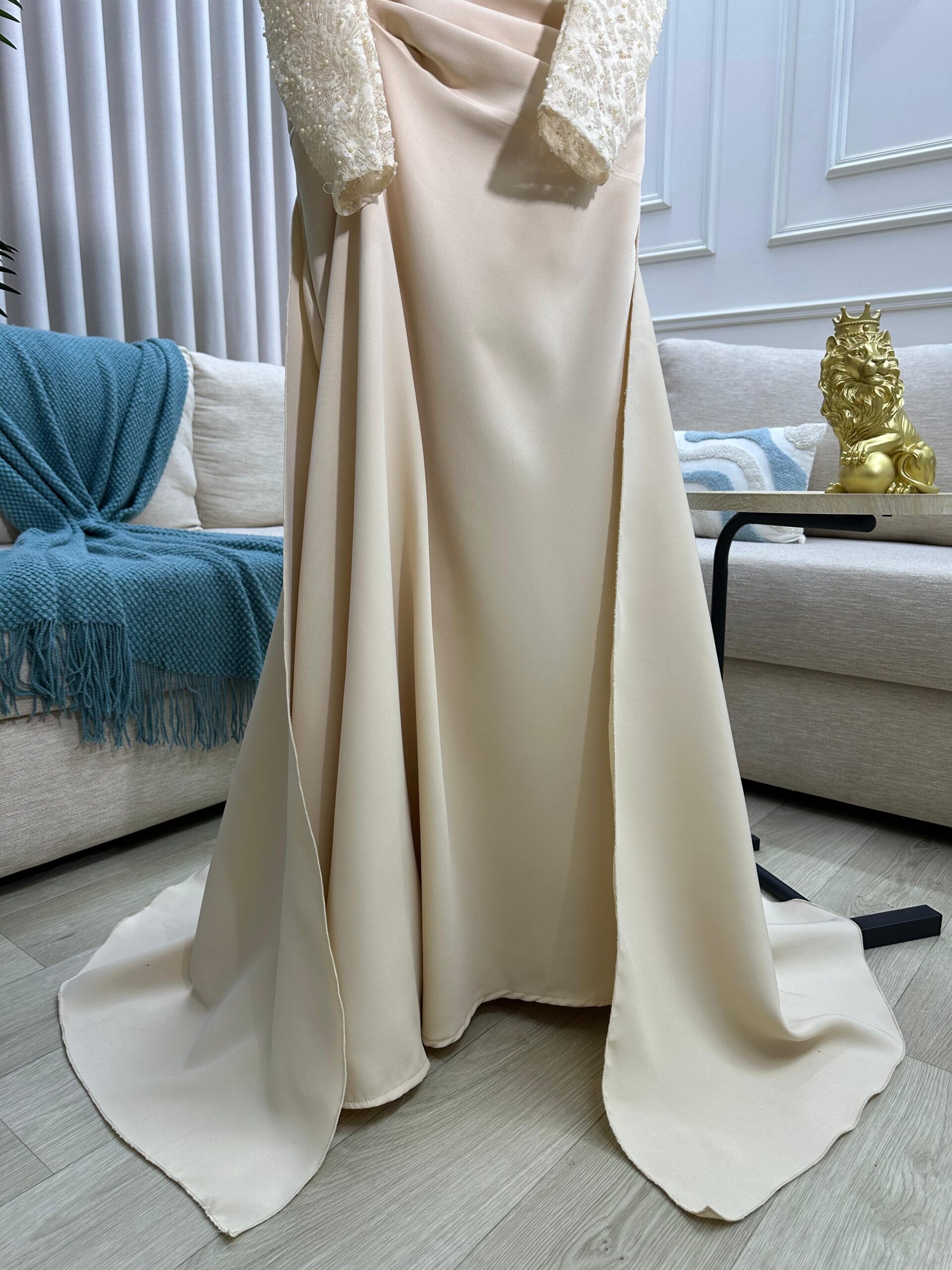 تألّقي بإطلالة ملكية لا تُنسى مع فستان السهرة البيج الفاخر من متجر روزيتا، العلامة السعودية التي تجمع بين الفخامة والرقي في كل تفصيلة. يتميز هذا التصميم بطابع راقٍ يعكس الأنوثة والأناقة العصرية، ليجعلك نجمة الحفل بلا