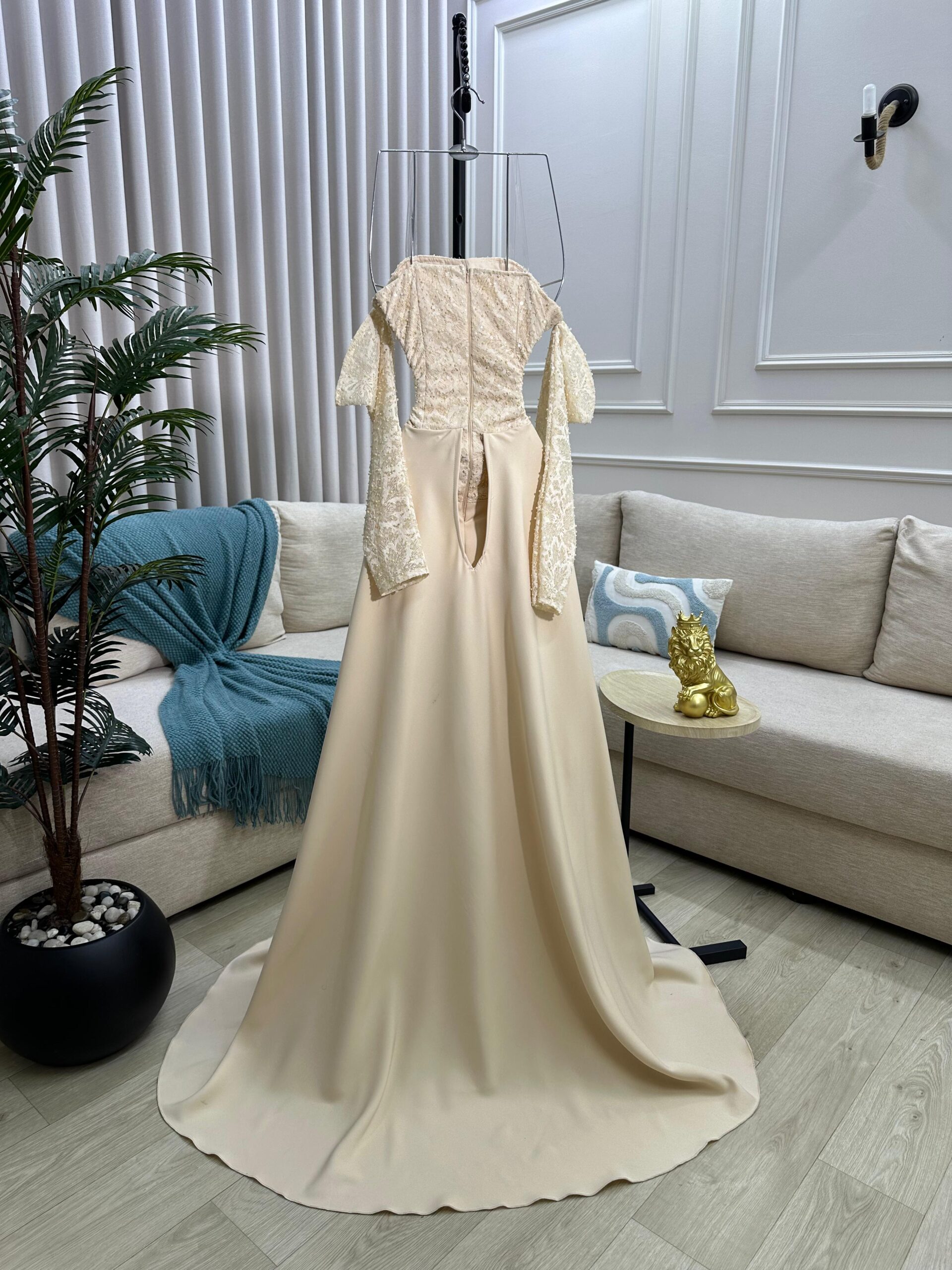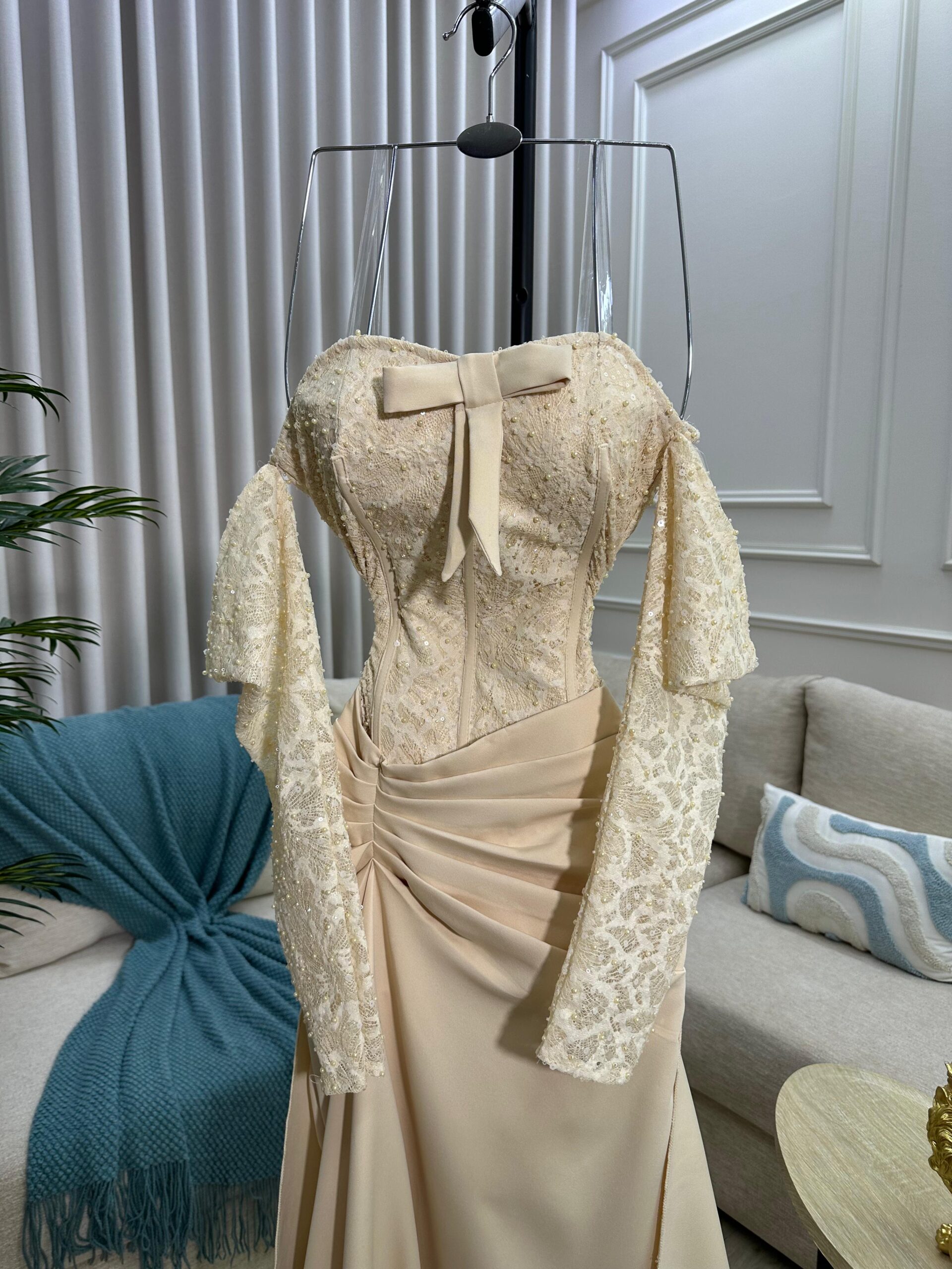 فستان سهرة لون بيج