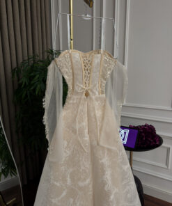 فستان سهره دانتيل وبطانة وجيبون كلفه تطريز
