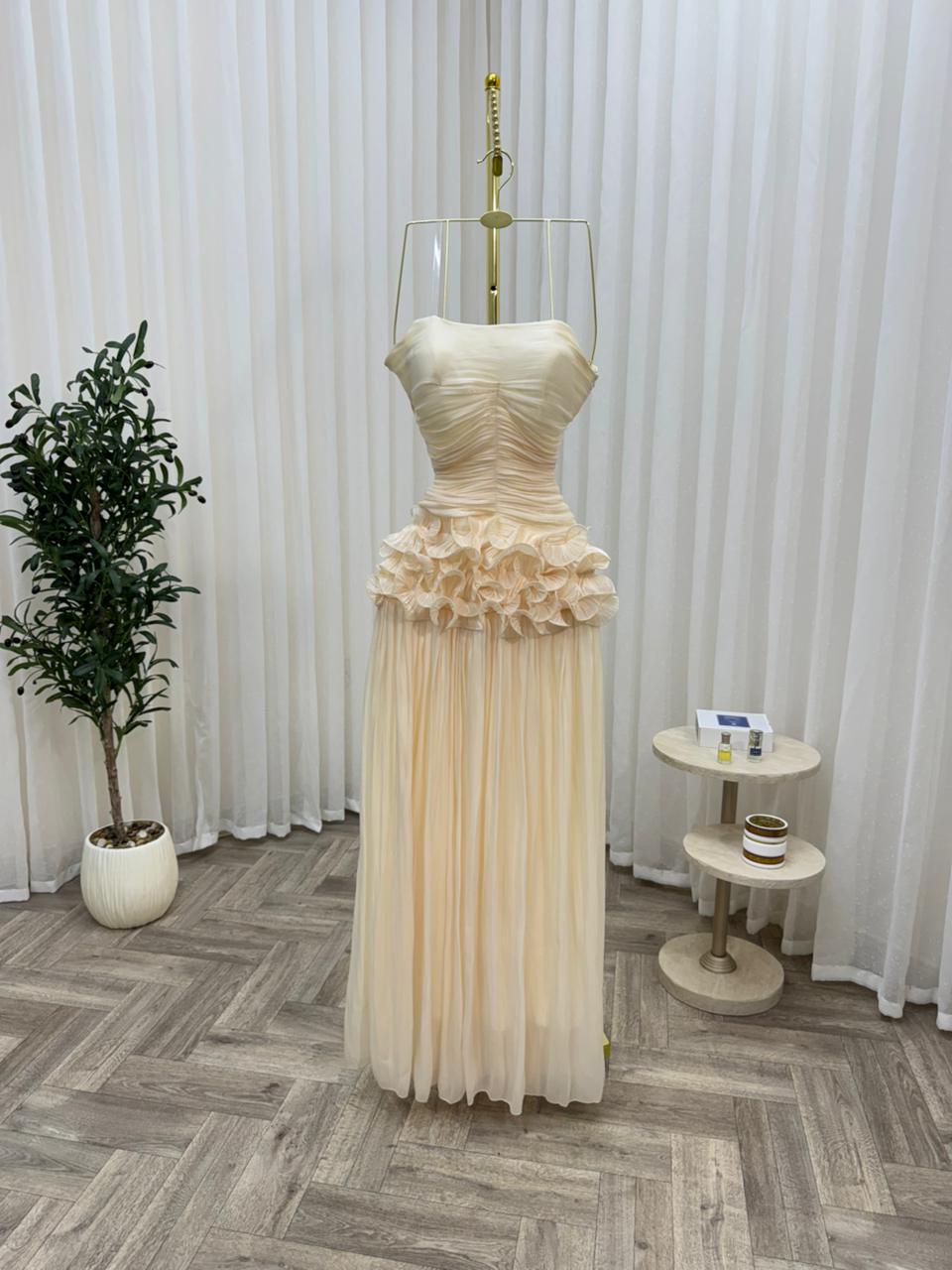 فستان سهرة لون بيج