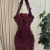 فستان سهرة خمري بتصميم فاخر من متجر روزيتا – لمسة من الأناقة والفخامة