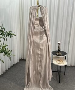 استمتعي بإطلالة ملكية مع هذا الفستان ، بتصميم مطوي يمنحك انسيابية وأناقة لا مثيل لها. يتميز الفستان بقصة مكشوفة الكتفين وبدرابيه أنثوي على منطقة الصدر مع خصر محدد يبرز القوام. الشق الأمامي الجريء يضفي لمسة عصرية على التصميم، بينما الطرحة الملتفة على الكتفين تضيف إحساسًا بالفخامة والرقي. مثالي لحفلات الزفاف، السهرات، والمناسبات الرسمية لكل من تبحث عن التميز والجاذبية.