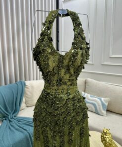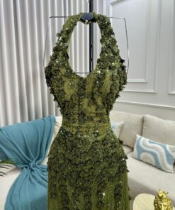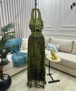 فستان سهرة لون زيتي فخم وانيق